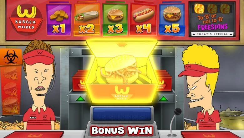 Customers Suck!- Select a food box to reveal an icon. Each icon is matched to a different bet multiplier and will be applied to the total win when found. Finding the upgrade symbol in a box will upgrade all of the potential multipliers for each food item. Watch out for Beavis and Butthead's disgusting signature dish as discovering 3 Worm Burgers will end the feature.