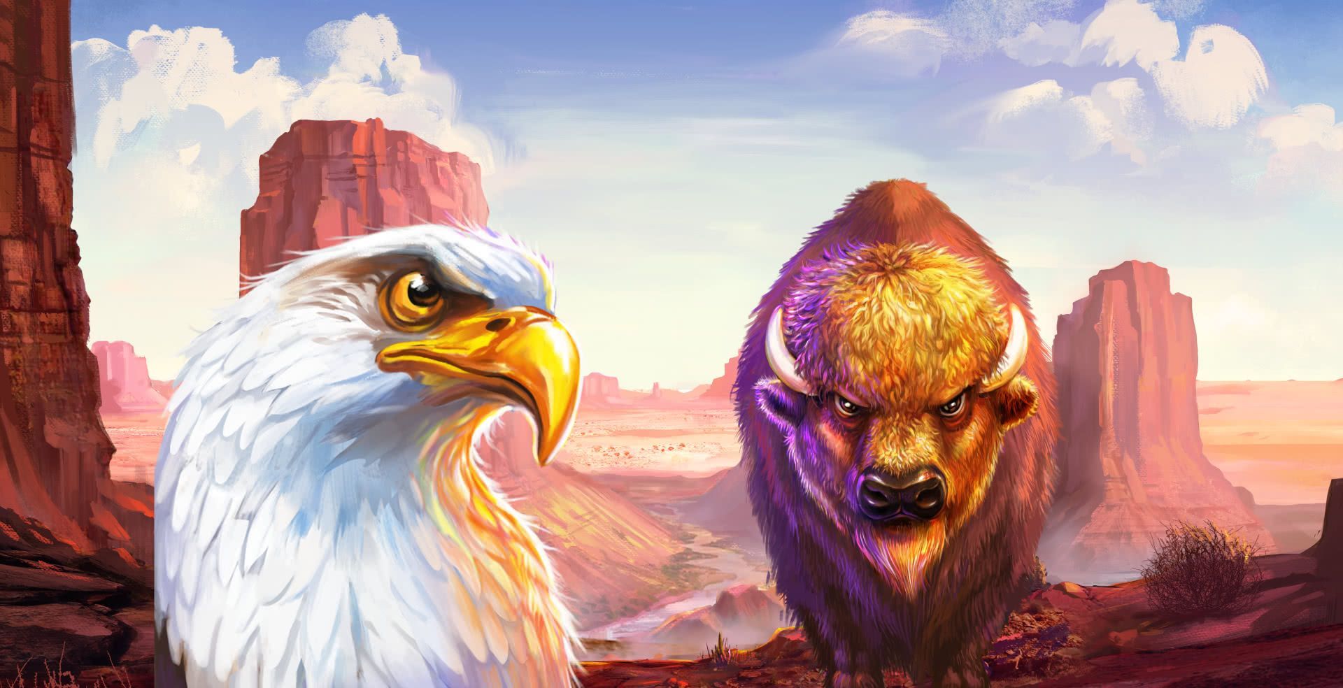 Big Buffalo Megaways slot from Skywind has hit the reels and is now stampeding at MrQ! The Big Buffalo is joined by playing card symbols, and his dear friends the Fox, Lynx, Wolf, and Eagle all ready to help you land those winning lines. The Buffalo is the highest value symbol on the reels, followed by the Eagle and Wolf, so with Multiplier Wild symbols during the Free Spins Bonus Round you’ll be wanting to see plenty of those animals pop up.