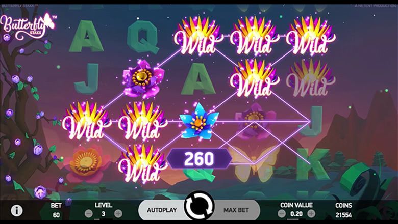 Stack it up in the Butterfly Staxx slot from Netent. The cocoons have opened and the butterflies take flight across the reels. Land a stack of Butterfly symbols on the reels to activate the respin mode with all Butterfly symbols moving to the leftmost available space on the reels. Match additional Butterfly symbols to be awarded additional respins. Activate the free spins mode and help the shy butterflies get out of their cocoon. All activated Butterfly symbols will fly to the leftmost position on the reels and stick for the duration of the mode for guaranteed high-paying wins.