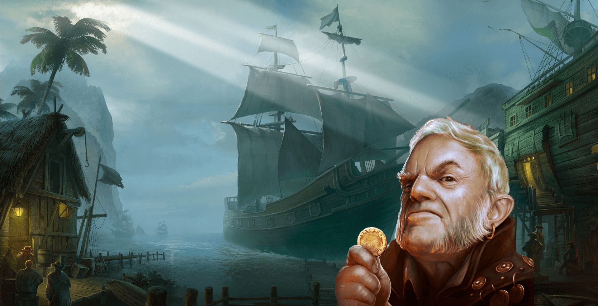 There’s a strong theme here that combines pirates with an abandoned treasure island - in the background, you can see pirates leaving the ship and arriving at an old building on the shore.