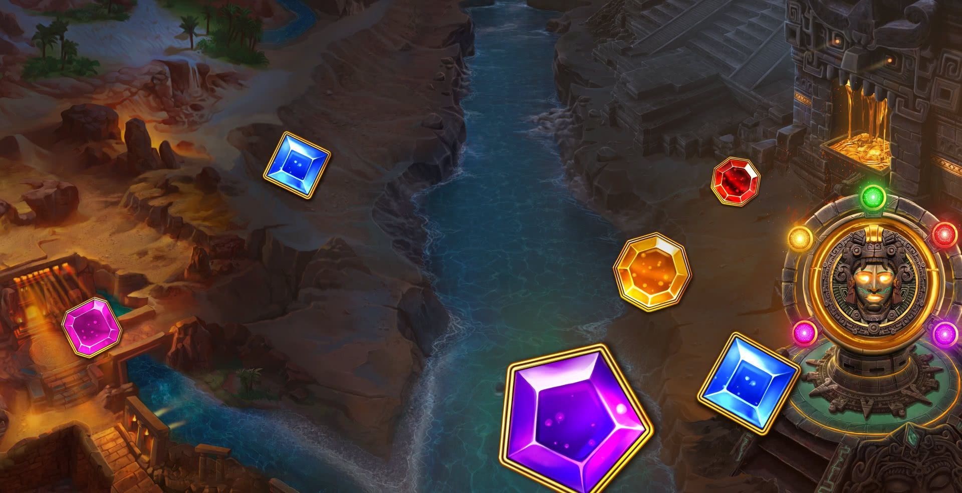Claim stacks of jewels in Gems Bonanza Slot - the Aztec themed game from Pragmatic Play. The slot features a bunch of different coloured gems - you just need to connect at least 5 of them together to win. There’s the Tumble Feature too, and exciting extras, so come on down to this detail-rich Aztec settlement. You’ve got the chance to win 10,000x your bet, so make sure you take it.