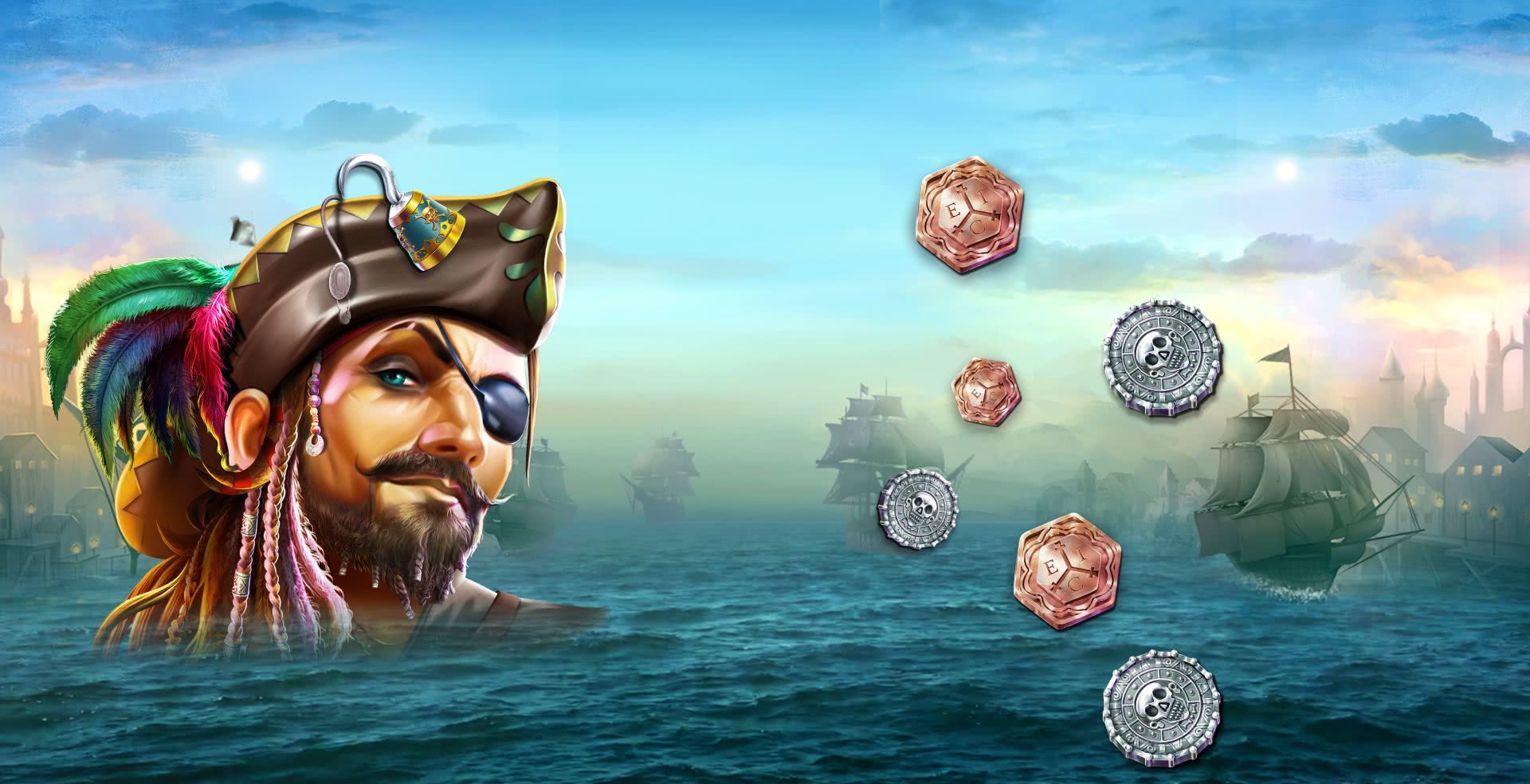 On this vessel, there be 10 different paying symbols to find, from coins in bronze, silver and gold to the pirates themselves. We also have a wild symbol, taking the form of a handsome chest full of booty. The wild substitutes for other symbols in a win line - so you could be in for some loot once you land it with a couple of high value pays.